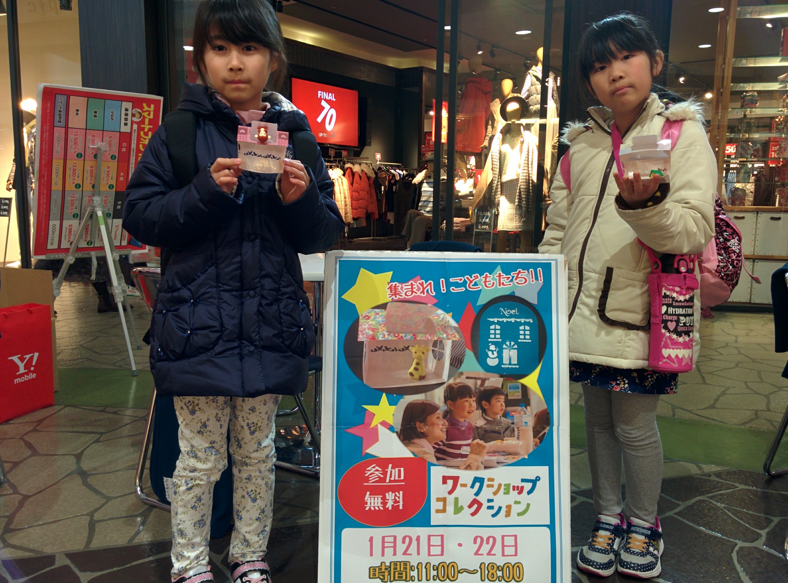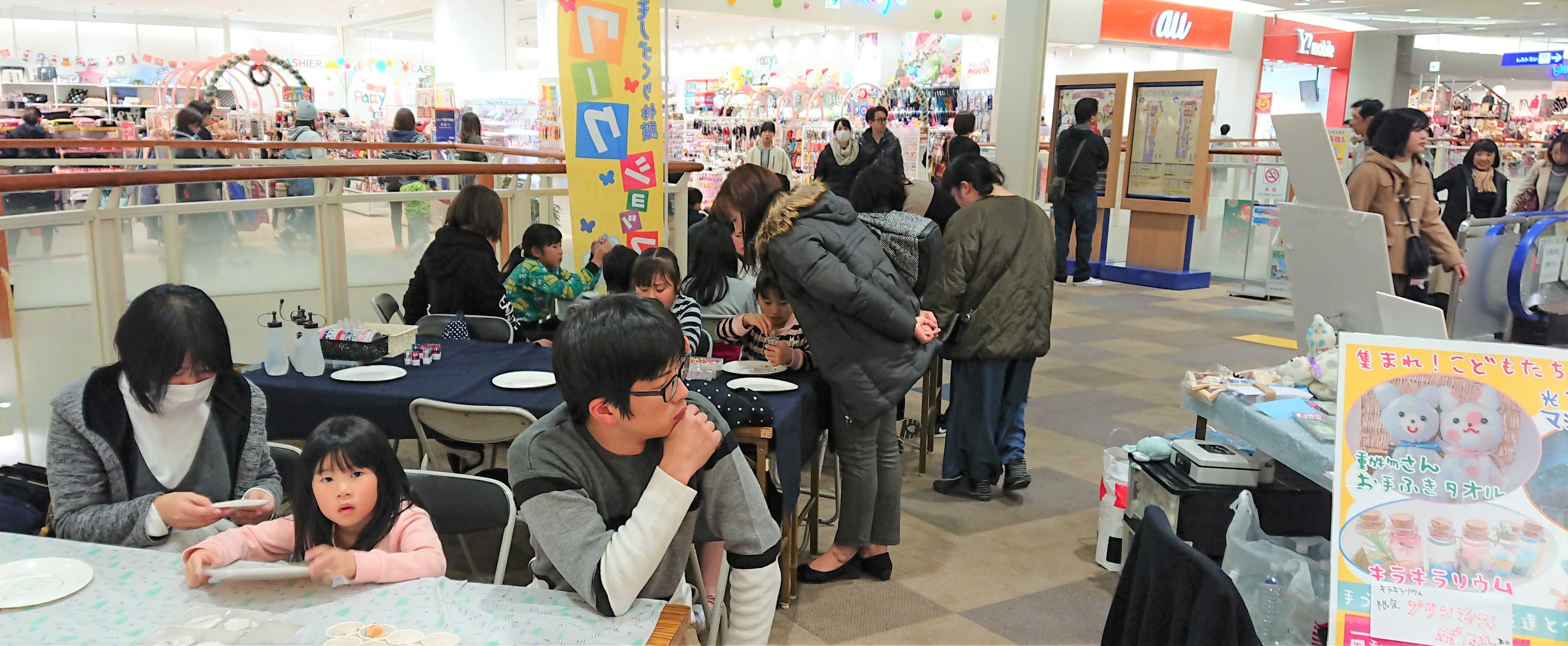 会場が吹き抜けとなり、寒い会場でしたが、さすがは子供は風の子!それでもワークショップ体験をしたいとお子様を中心にファミリー層のお客様からご参加を頂きました。携帯ショプでもご提案を受け付ける事ができ年内最初のイベントは成功しました!