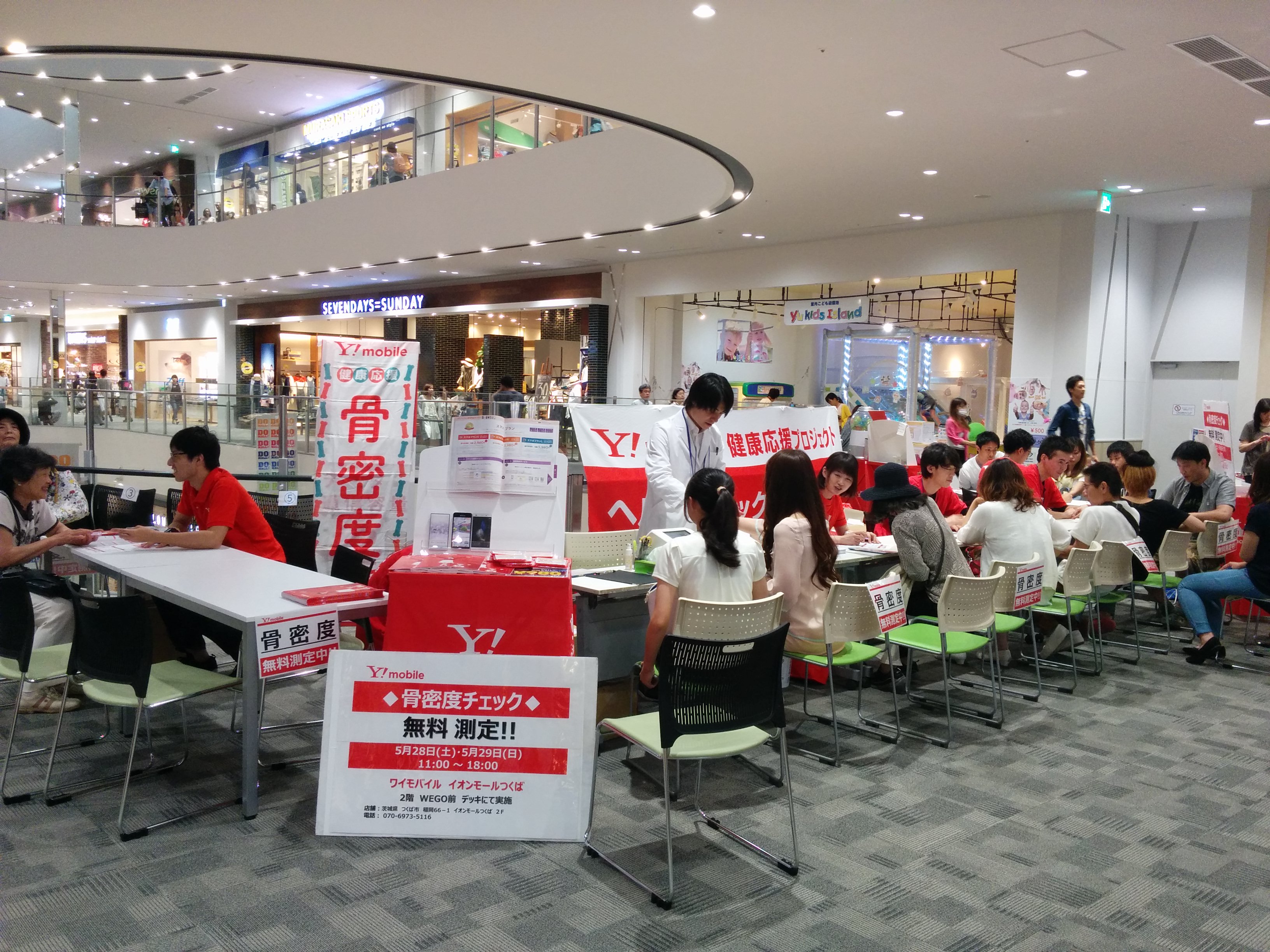 オープンして数ヶ月のイオンモールのイベント会場にて、健康チェックと携帯ショップPRを行い、265組のお客様へご参加いただきました。